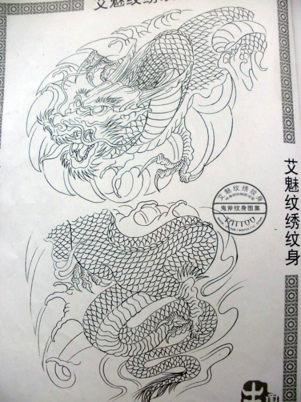 龙纹身手稿_一组老传统黑灰龙手稿纹身图案