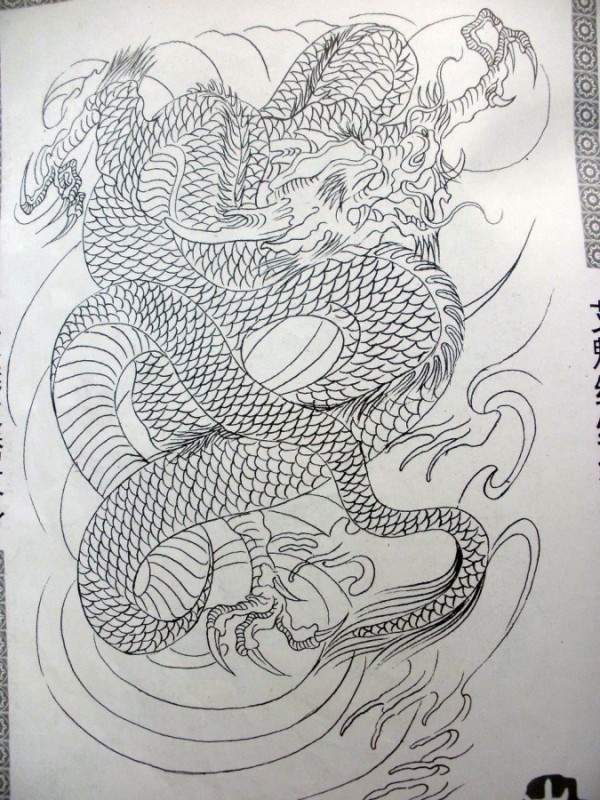龙纹身手稿_一组老传统黑灰龙手稿纹身图案