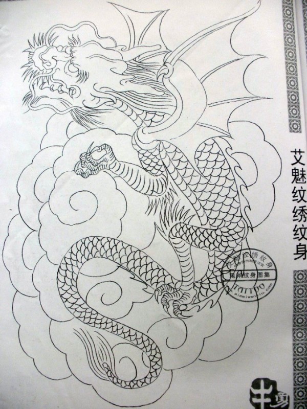 龙纹身手稿_一组老传统黑灰龙手稿纹身图案