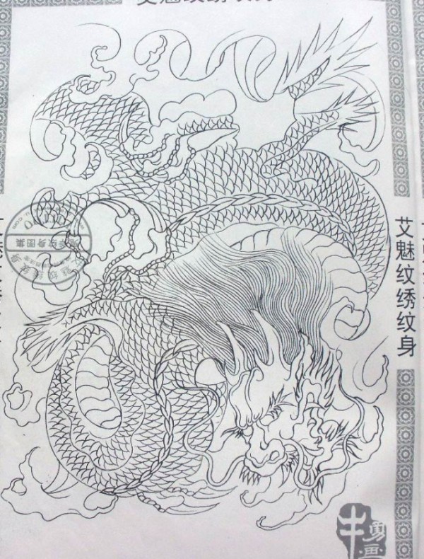 龙纹身手稿_一组老传统黑灰龙手稿纹身图案