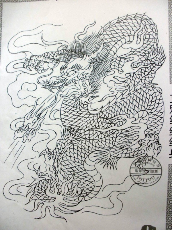 龙纹身手稿_一组老传统黑灰龙手稿纹身图案