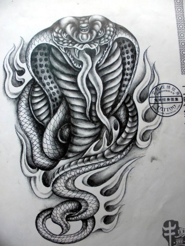 龙纹身手稿_一组老传统黑灰龙手稿纹身图案