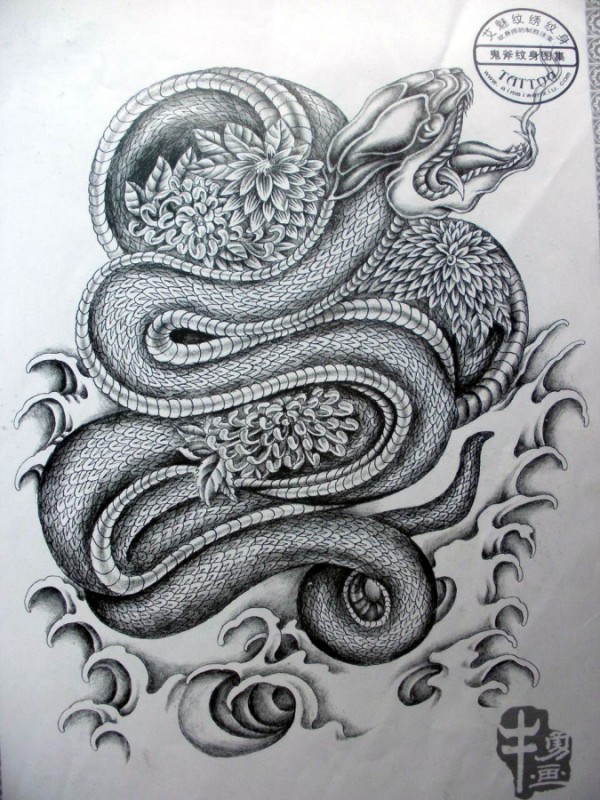 龙纹身手稿_一组老传统黑灰龙手稿纹身图案