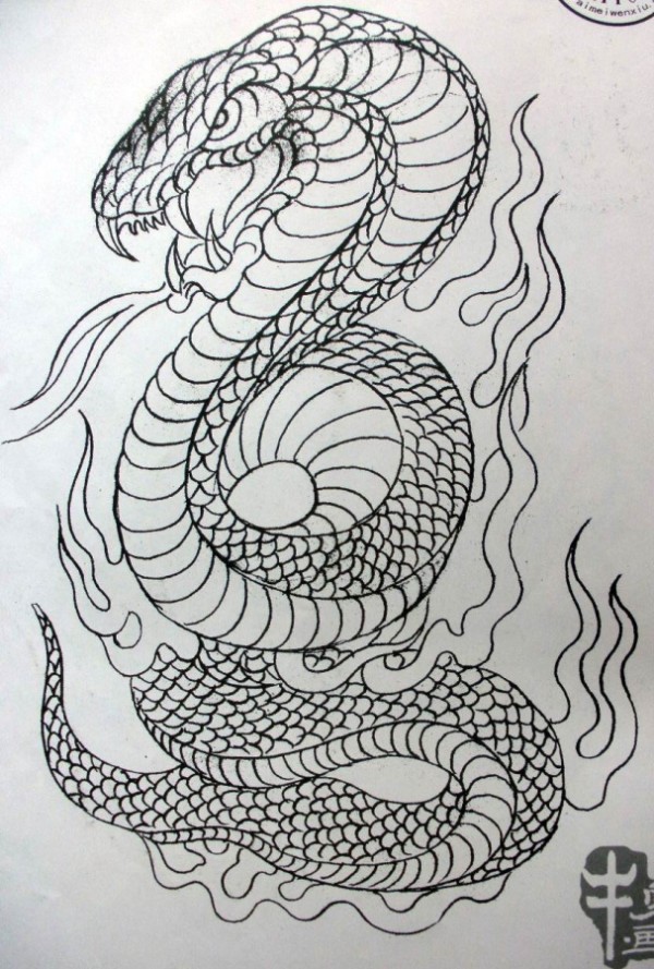 龙纹身手稿_一组老传统黑灰龙手稿纹身图案