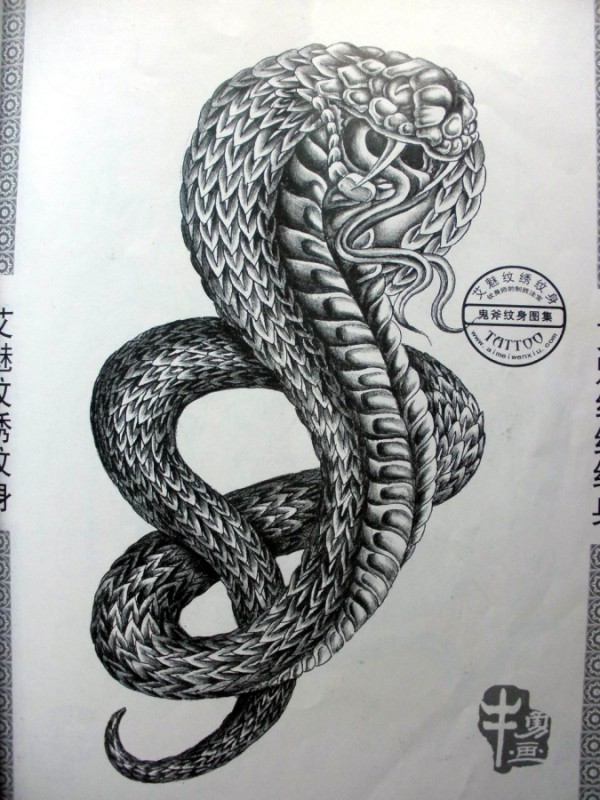龙纹身手稿_一组老传统黑灰龙手稿纹身图案