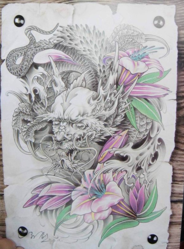 传统艺妓般若纹身图案手稿