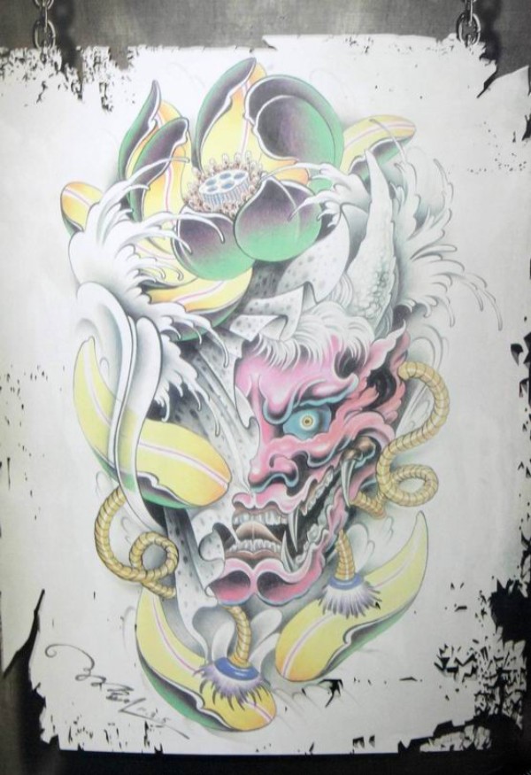 能面万媚纹身手稿_52张日式能剧面具纹身手稿图案素材欣赏