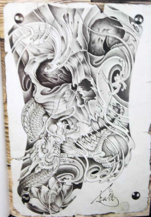 日式大板雾满背纹身手稿