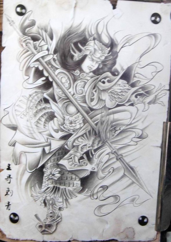 能面万媚纹身手稿_52张日式能剧面具纹身手稿图案素材欣赏