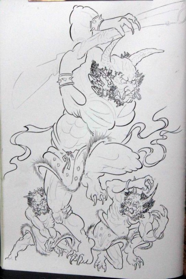 龙纹身手稿_一组老传统黑灰龙手稿纹身图案