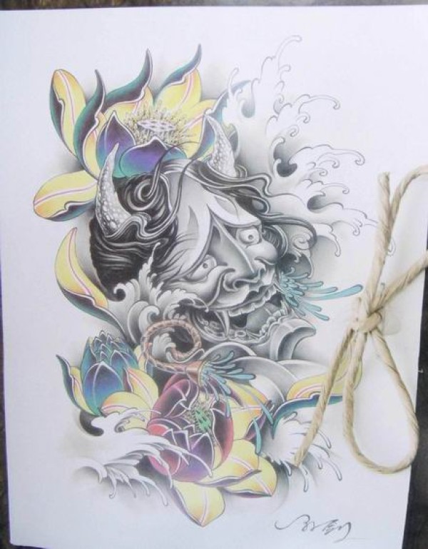 传统艺妓般若纹身图案手稿