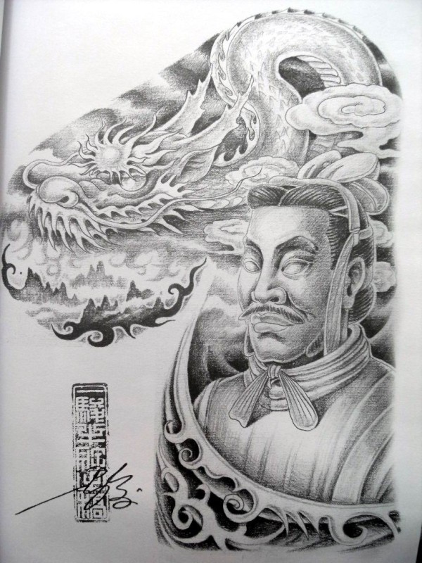 龙纹身手稿_一组老传统黑灰龙手稿纹身图案