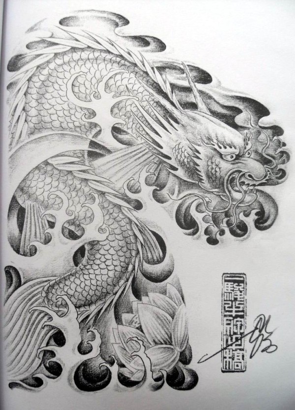 龙纹身手稿_一组老传统黑灰龙手稿纹身图案