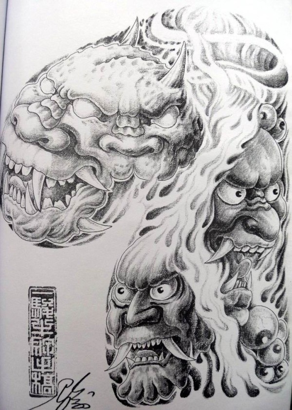 能面万媚纹身手稿_52张日式能剧面具纹身手稿图案素材欣赏