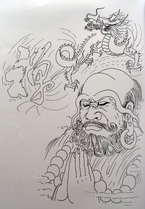 龙纹身手稿_一组老传统黑灰龙手稿纹身图案