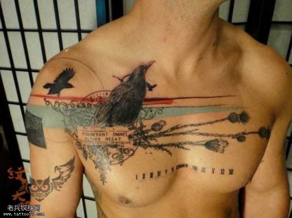 胸部乌鸦纹身图案