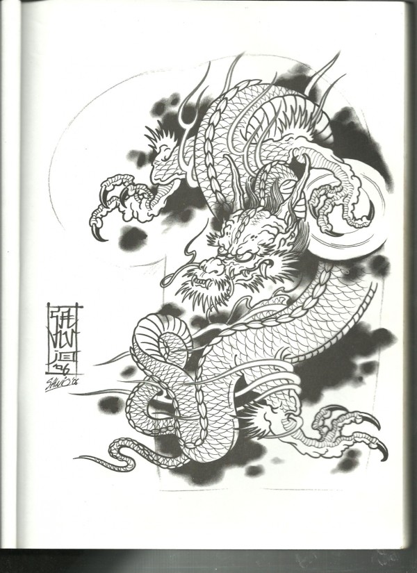 龙纹身手稿_一组老传统黑灰龙手稿纹身图案