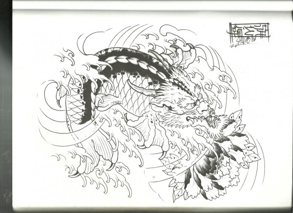 龙纹身手稿_一组老传统黑灰龙手稿纹身图案