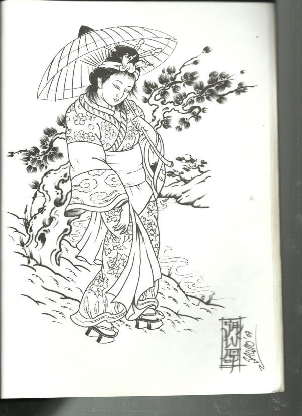 传统艺妓般若纹身图案手稿