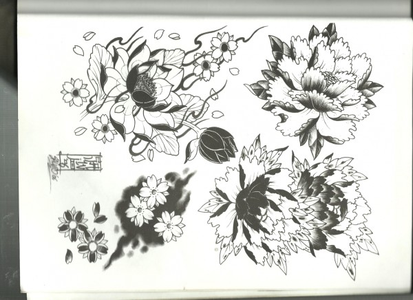 一组15张莲花纹身手稿图案素材