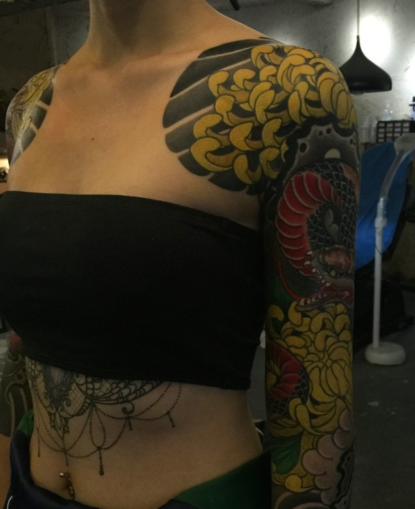 日式手彫刺青作品—半甲龙很感谢客户认可手彫刺青,手彫是日本纹身的手工雕刻技术,时间可以追溯到日本17世纪的江户时代。19世纪,手彫技术被日本黑帮挪用,被用作入会仪式,象征着从此就是江湖中人。在日式传统