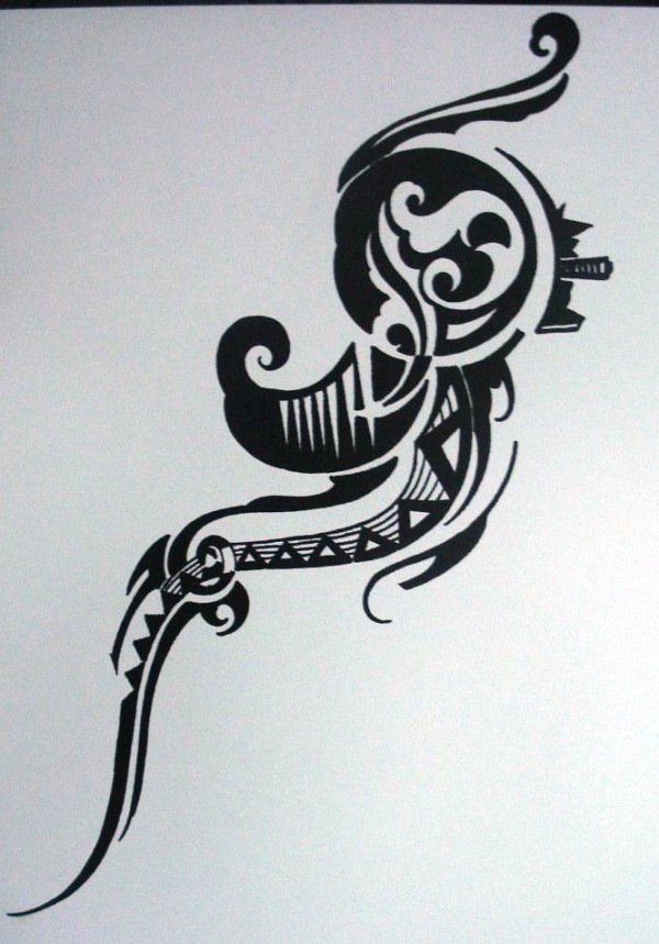 龙纹身手稿_一组老传统黑灰龙手稿纹身图案