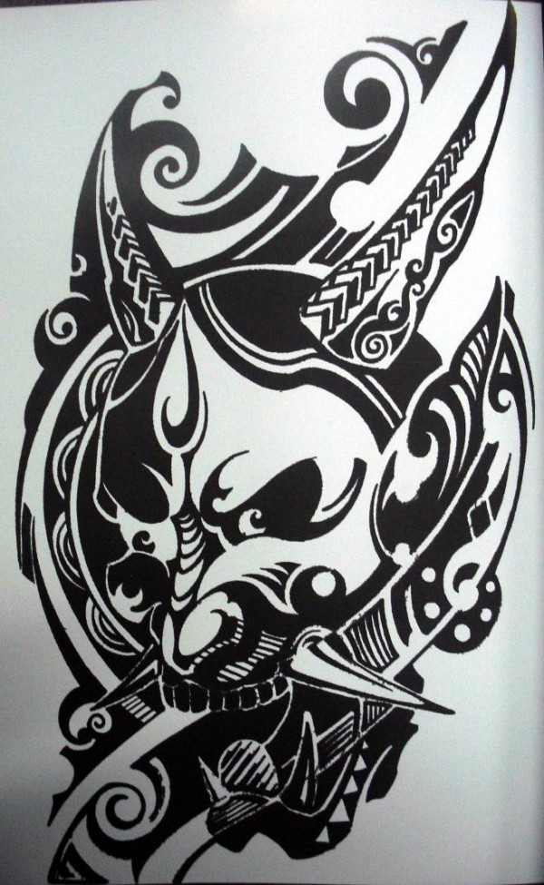 能面万媚纹身手稿_52张日式能剧面具纹身手稿图案素材欣赏