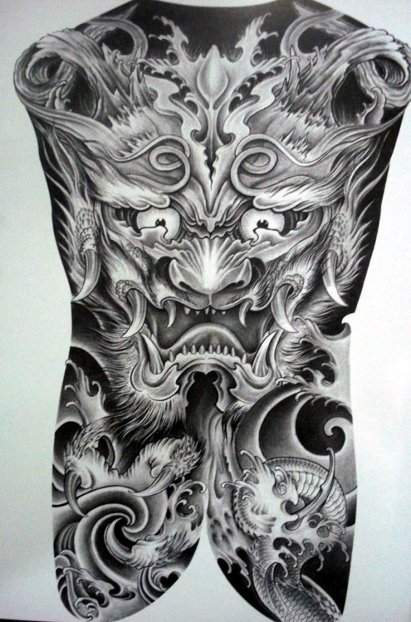 日式大板雾满背纹身手稿