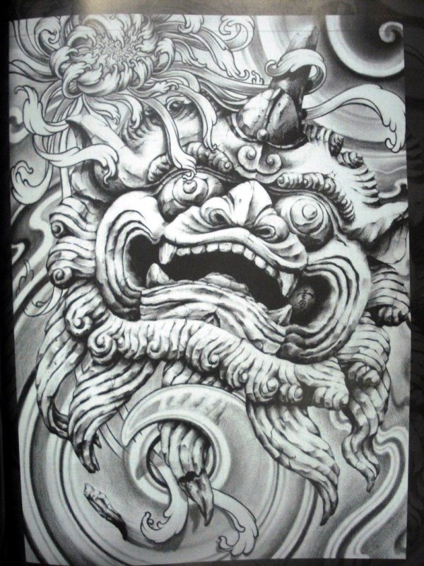 龙纹身手稿_一组老传统黑灰龙手稿纹身图案