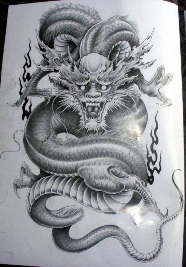 龙纹身手稿_一组老传统黑灰龙手稿纹身图案
