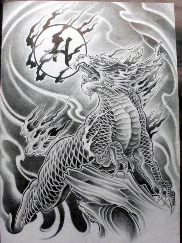 龙纹身手稿_一组老传统黑灰龙手稿纹身图案