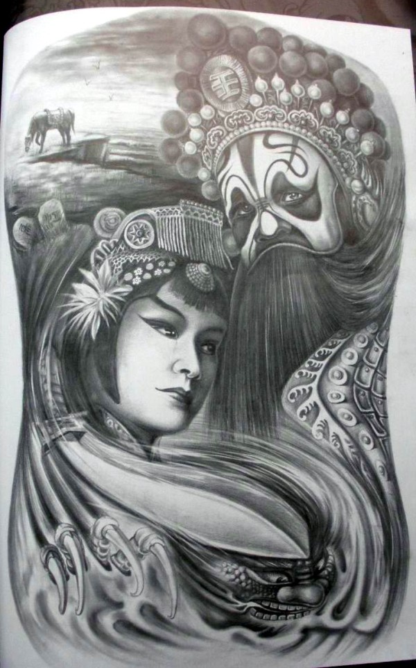 能面万媚纹身手稿_52张日式能剧面具纹身手稿图案素材欣赏