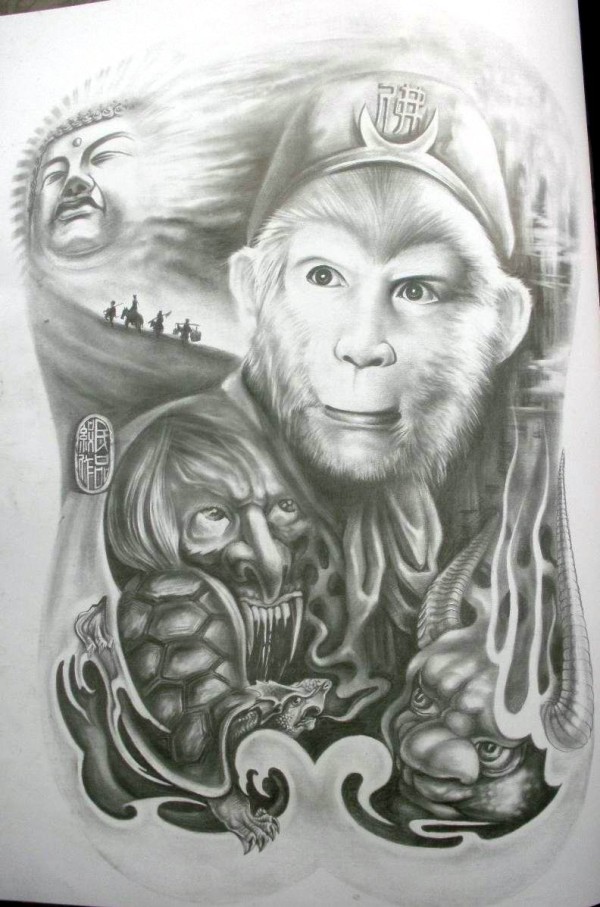 龙纹身手稿_一组老传统黑灰龙手稿纹身图案
