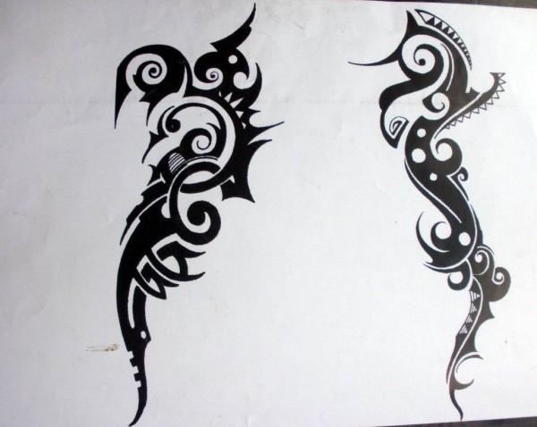 龙纹身手稿_一组老传统黑灰龙手稿纹身图案