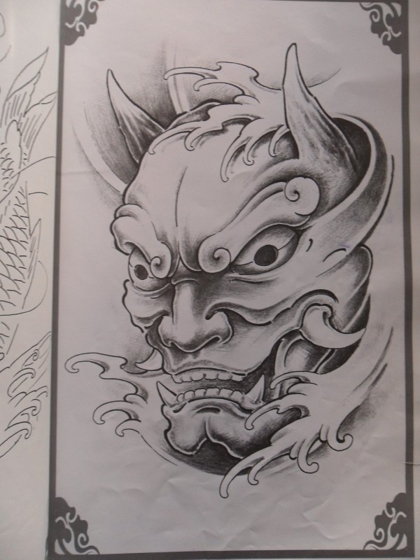 能面万媚纹身手稿_52张日式能剧面具纹身手稿图案素材欣赏