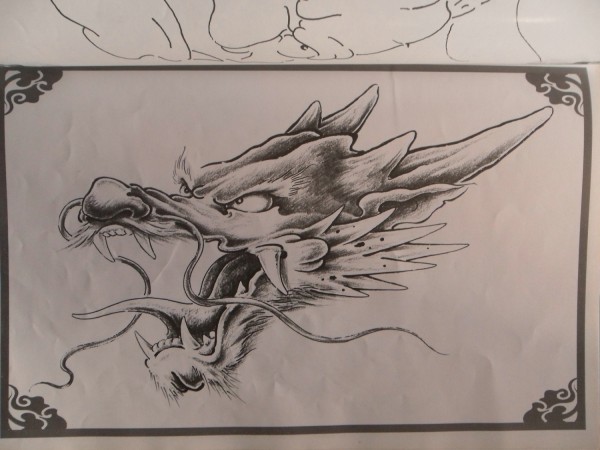 龙纹身手稿_一组老传统黑灰龙手稿纹身图案