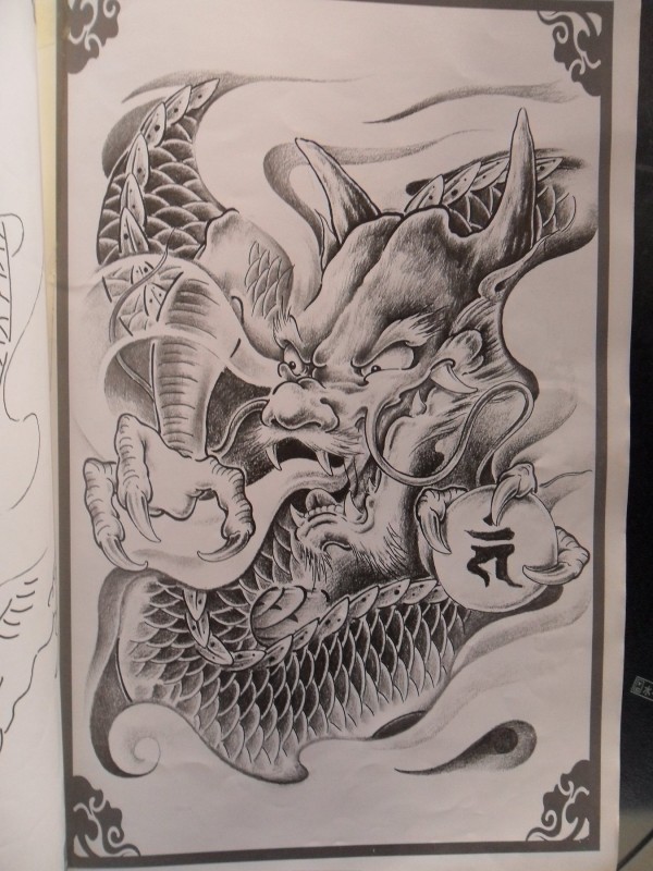 龙纹身手稿_一组老传统黑灰龙手稿纹身图案