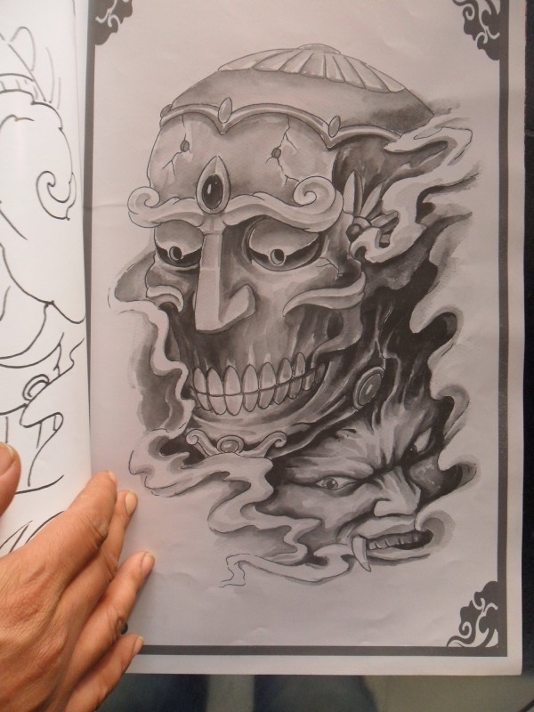 能面万媚纹身手稿_52张日式能剧面具纹身手稿图案素材欣赏
