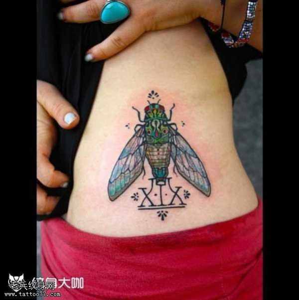 腰部昆虫纹身图案
