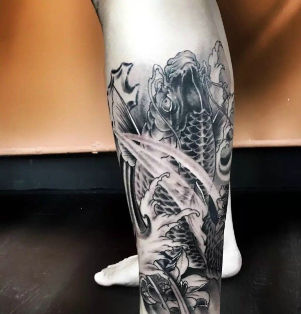 传统鲤鱼花小腿纹身_腿部纹身图案大全_纹身图吧