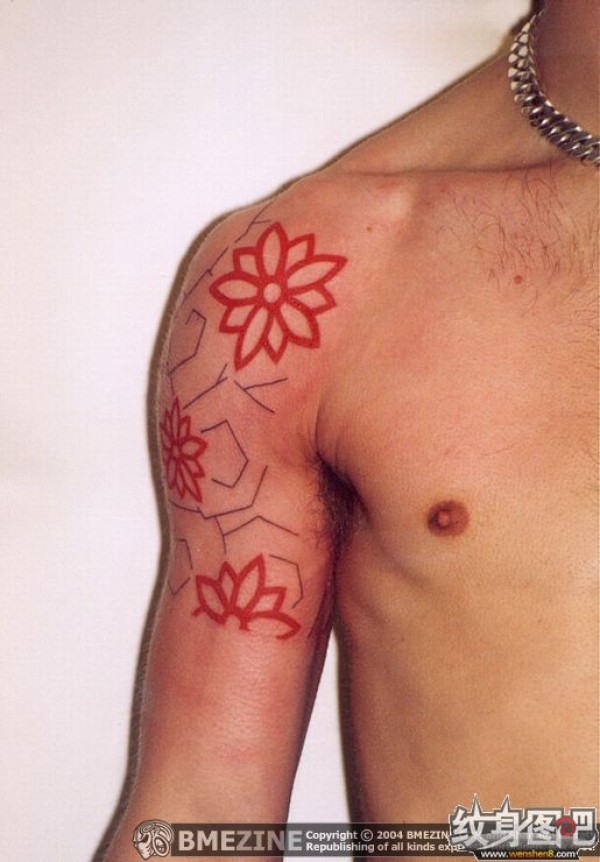 女生肩花纹身_15张女性双肩对称的肩花纹身图案作品图片