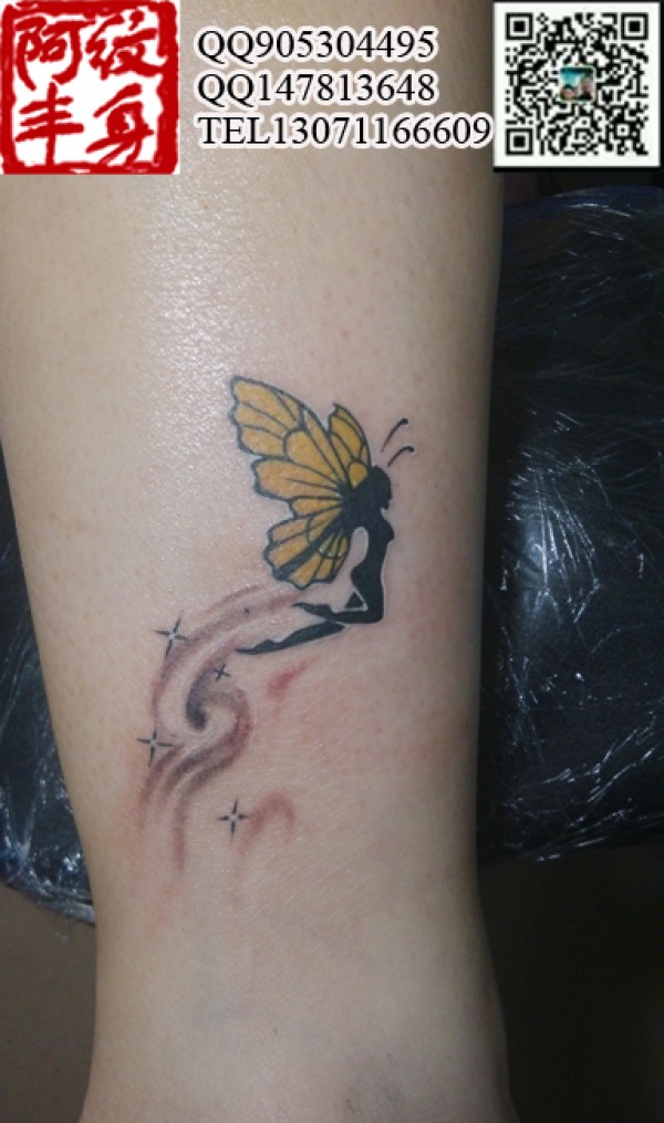 腿部纹身图案-腿部小精灵纹身-丰台纹身-阿丰纹身店QQ微信147813648