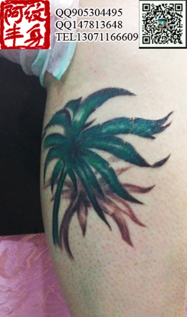 腿部纹身图案-椰子树纹身-丰台纹身-阿丰纹身店QQ微信147813648