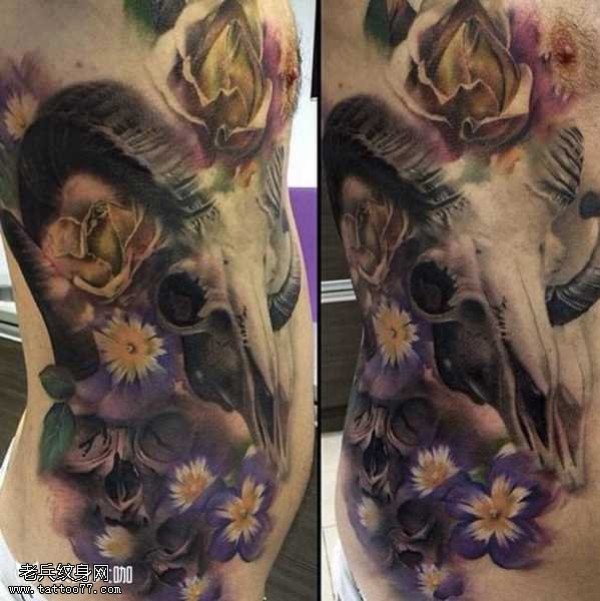 腰部羊纹身图案
