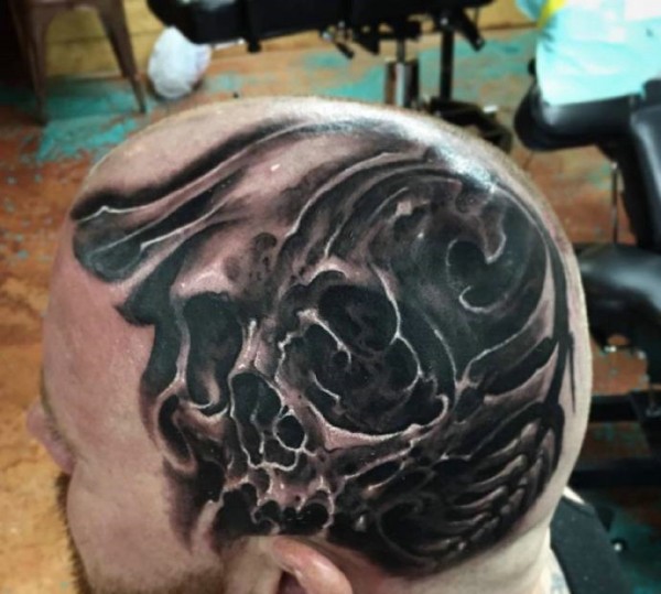 霸气男头部时尚纹身图片_头部纹身图案大全_纹身图吧