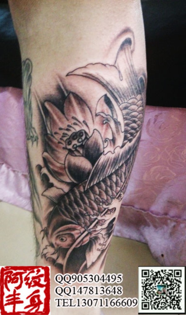 腿部纹身图案-腿部鱼纹身-丰台纹身-阿丰纹身店QQ微信147813648