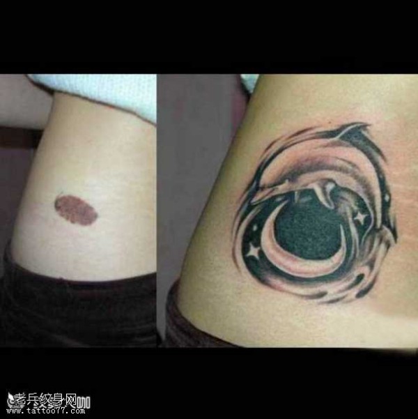 分享一款腰部时尚性感的蝶恋花纹身图案_腰部纹身图案大全_纹身图吧