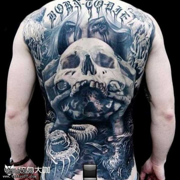 背部个性黑骷髅纹身图案