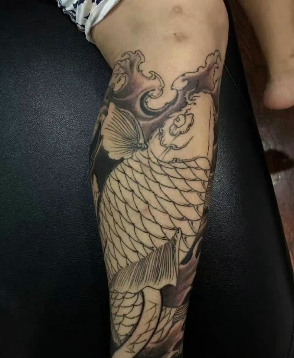传统鲤鱼花小腿纹身_腿部纹身图案大全_纹身图吧