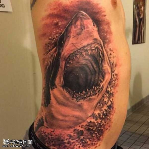 腰部鲨鱼纹身图案